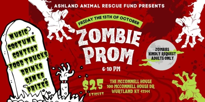 Join us for a spooktacular evening from 6-10pm at the McConnell House in Greenup to celebrate our first ever AARF Zombie Prom to raise money for the Rescue.