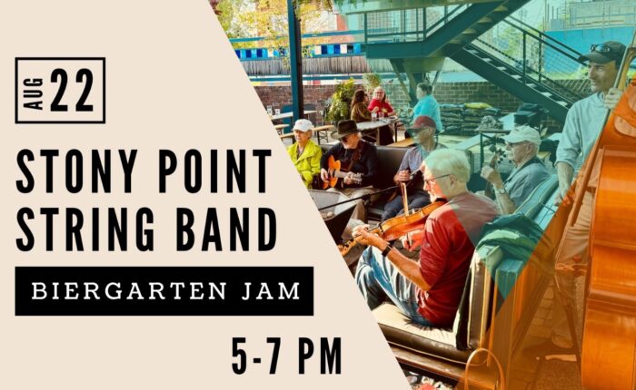 Stony Point String Band returns to the Bahnhof Restaurant, 745 7th Avenue, Huntington, WV, on Thursday, August 22, 5 pm – 7 pm. The band will host an old-time music open jam. Join us to play, listen to the music, and enjoy the delicious menu!