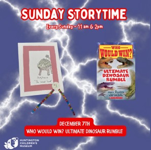 Join us Sunday, December 7 for storytime! Together we will read Who Would Win and will create dinosaur pictures!
