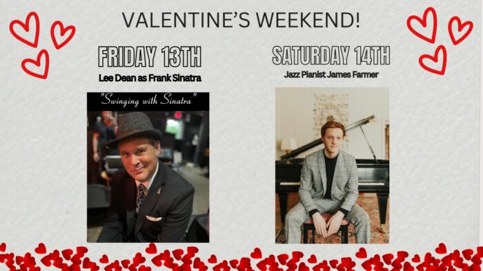 Join us for 2 nights of fantastic live music for Valentine’s Day weekend! Lee Dean will be performing Frank Sinatra songs on Friday the 13th from 6pm-9pm and guest jazz pianist, James Farmer, will perform Saturday the 14th from 6pm-9pm.