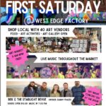 Come out for First Saturday with forty local art vendors, food, and live music.