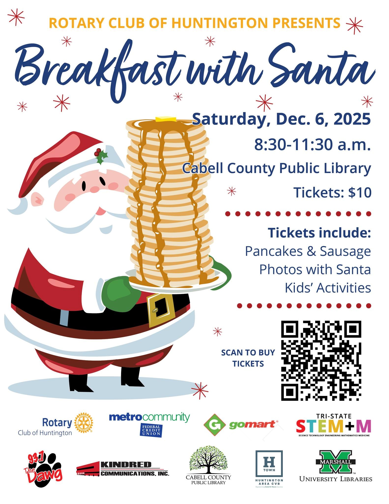 Rotary  Club of Huntington's Breakfast with Santa – December 6 Breakfast with Santa will be from 8:30 am – 11:30 am at the Cabell County Library. Kids will have the... View Article