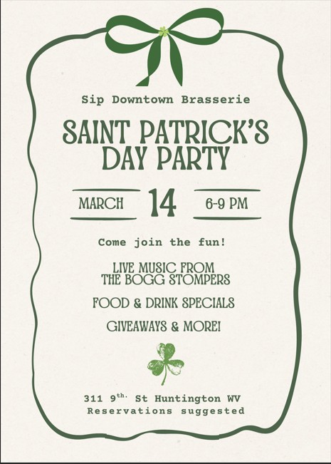 Join us Saturday, March 14th for an early Saint Patricks Day celebration!We will have live music by a Sip favorite, The Bogg Stompers, food and drink specials, and fun giveaways!Reservations... View Article